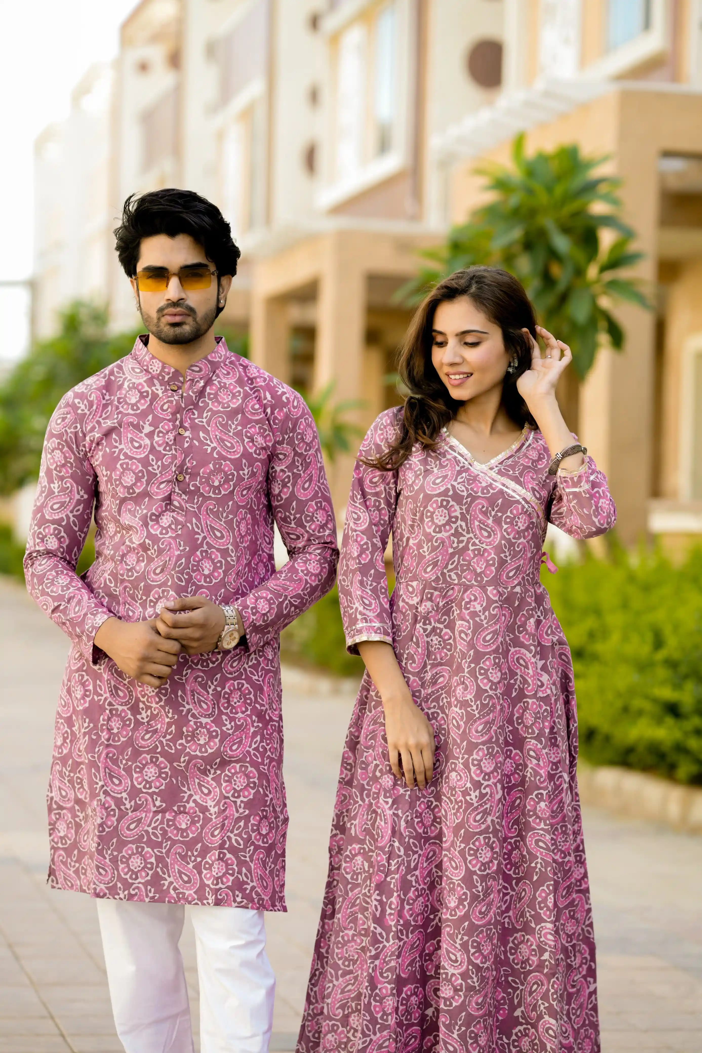 Perfectly matched for special occasions, our couple dress sets blend tradition and style—ideal for weddings, festivals, or photoshoots.Celebrate love and style together—shop our coordinated couple outfits that bring harmony and charm to any festive occasion.