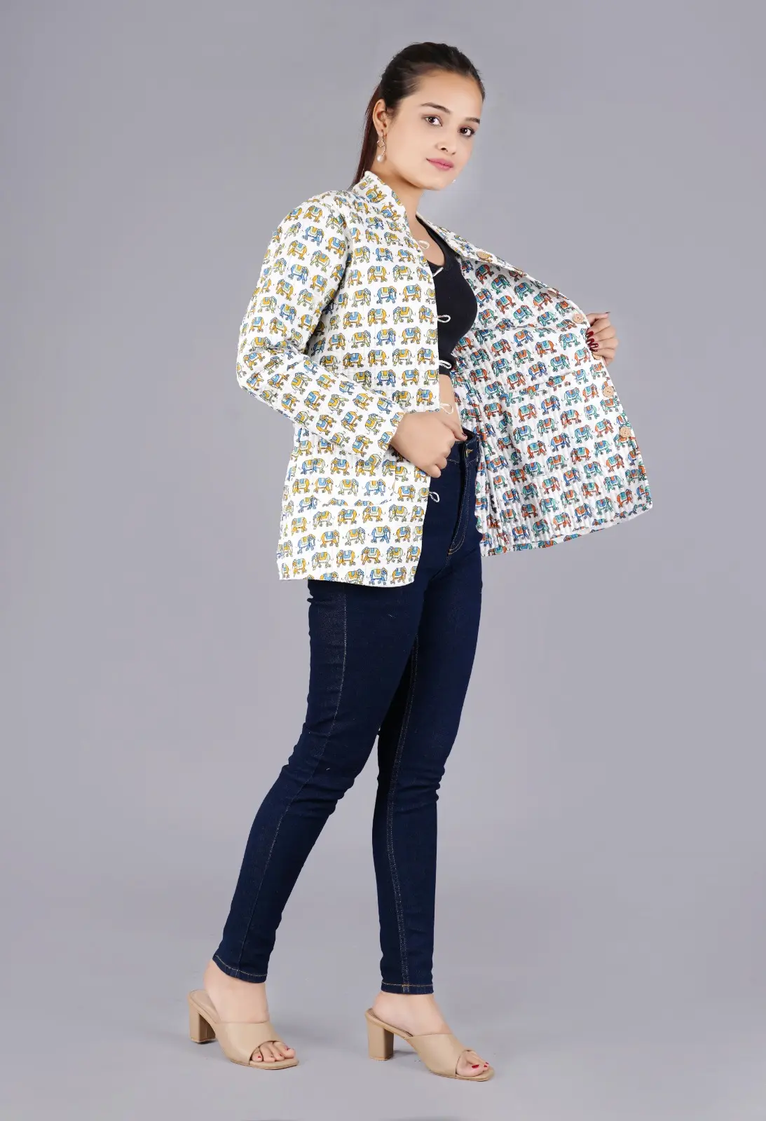Stay warm in style with our Jaipuri quilted reversible jackets, a perfect blend of Rajasthani ethnic fashion and functionality. Ideal for any occasion, from office to daily wear, these winter essentials bring comfort and elegance to your wardrobe.