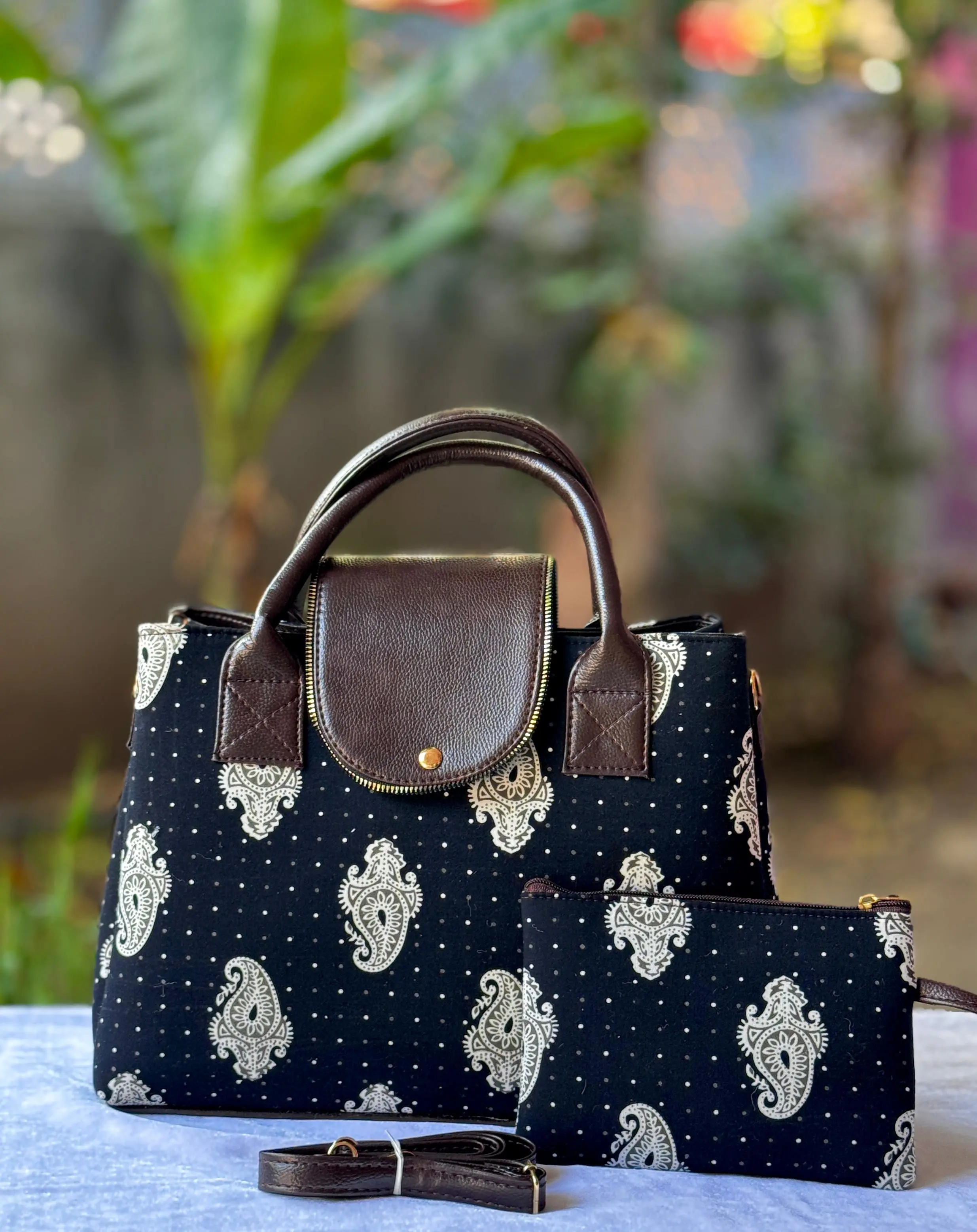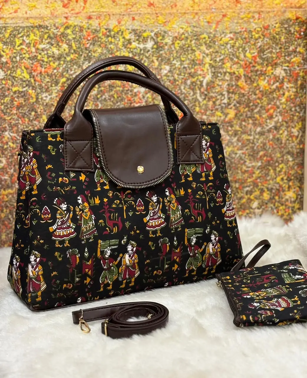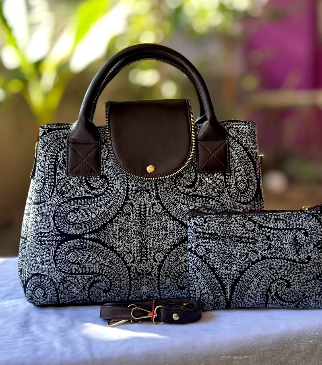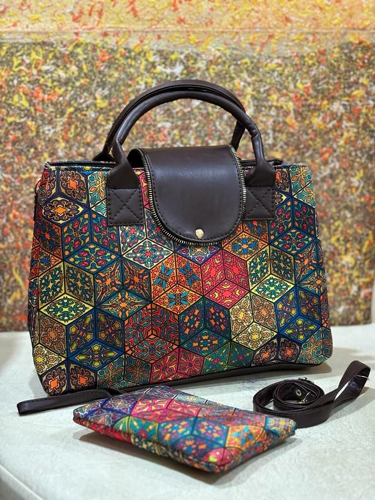 his Ladies Bag combines sophistication with functionality — spacious enough for your essentials, stylish enough to turn heads.This Ethnic Print Bag features vibrant, handcrafted designs inspired by India’s rich textile heritage. Whether paired with jeans or a kurti, it adds an authentic splash of color and story to your look.