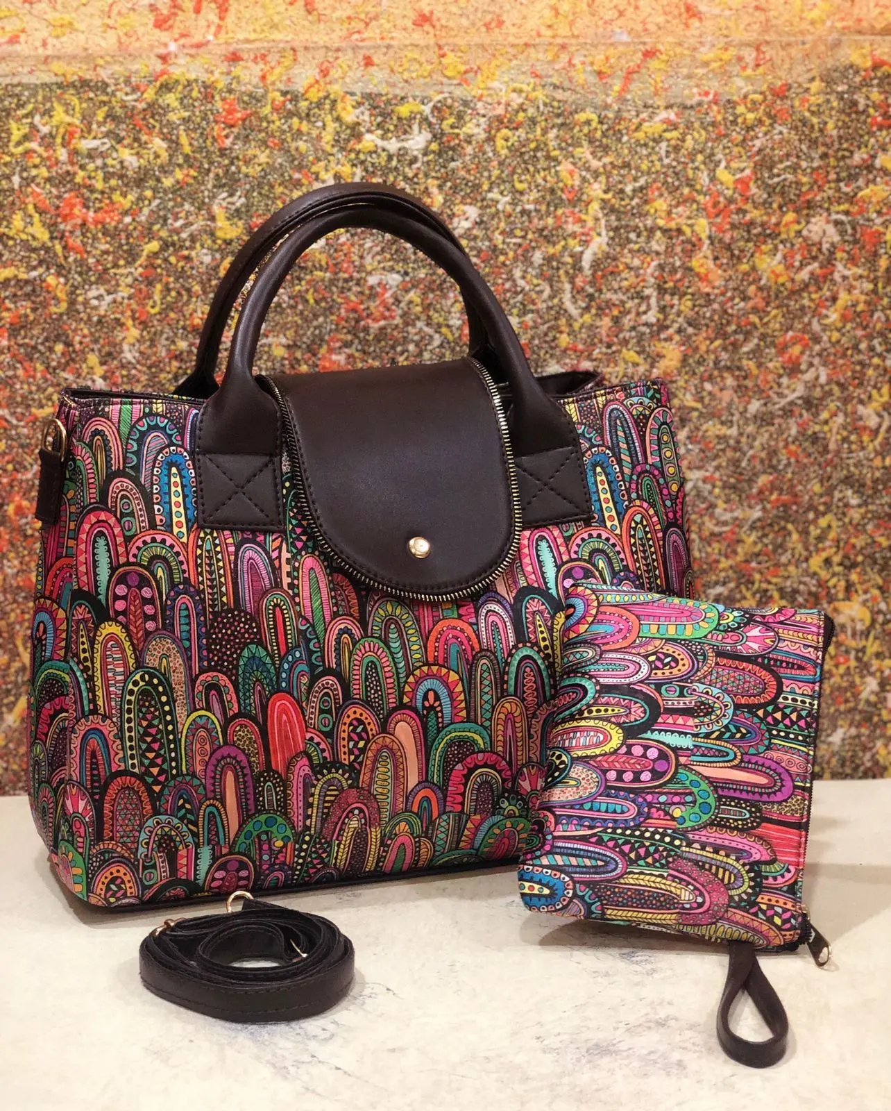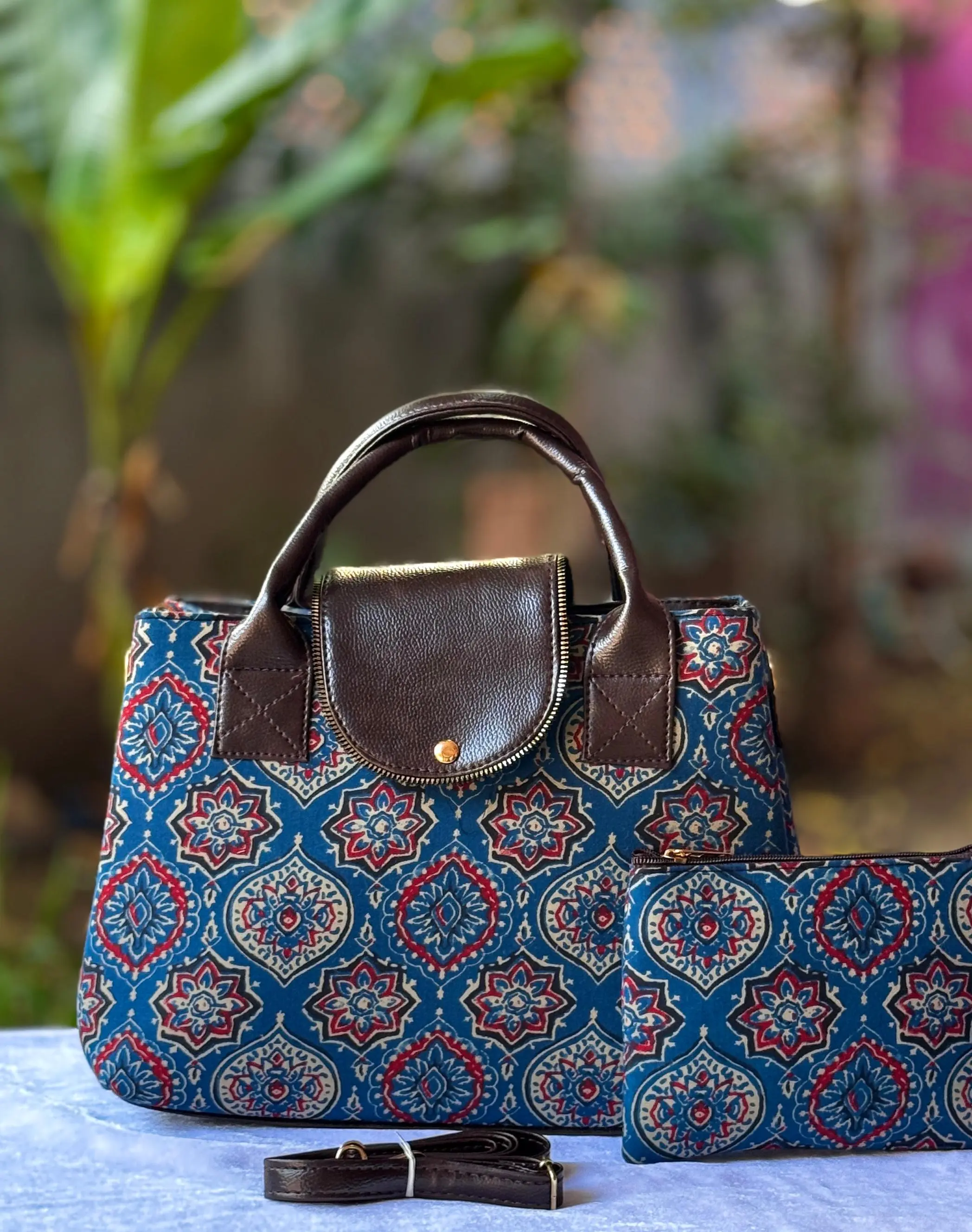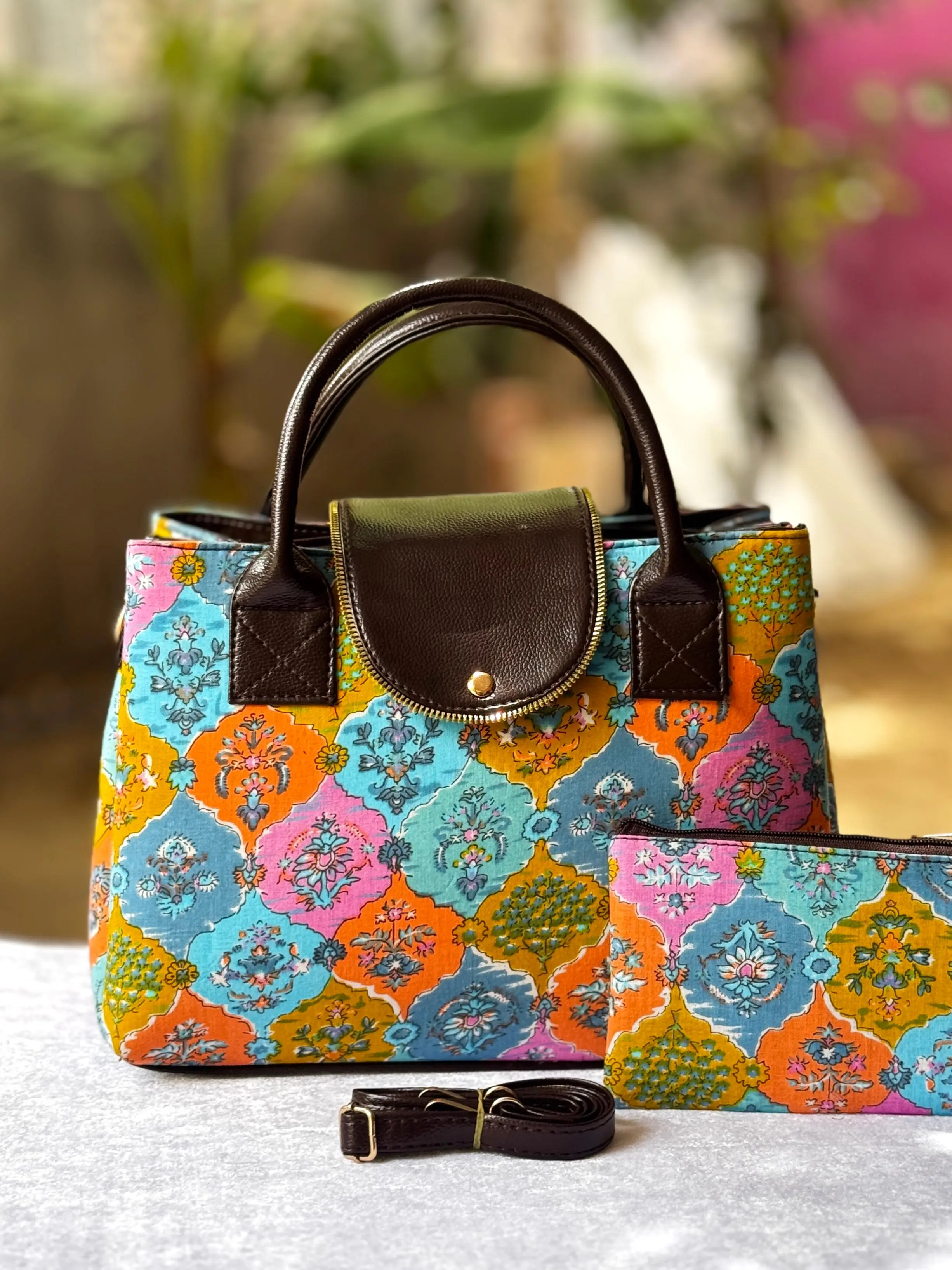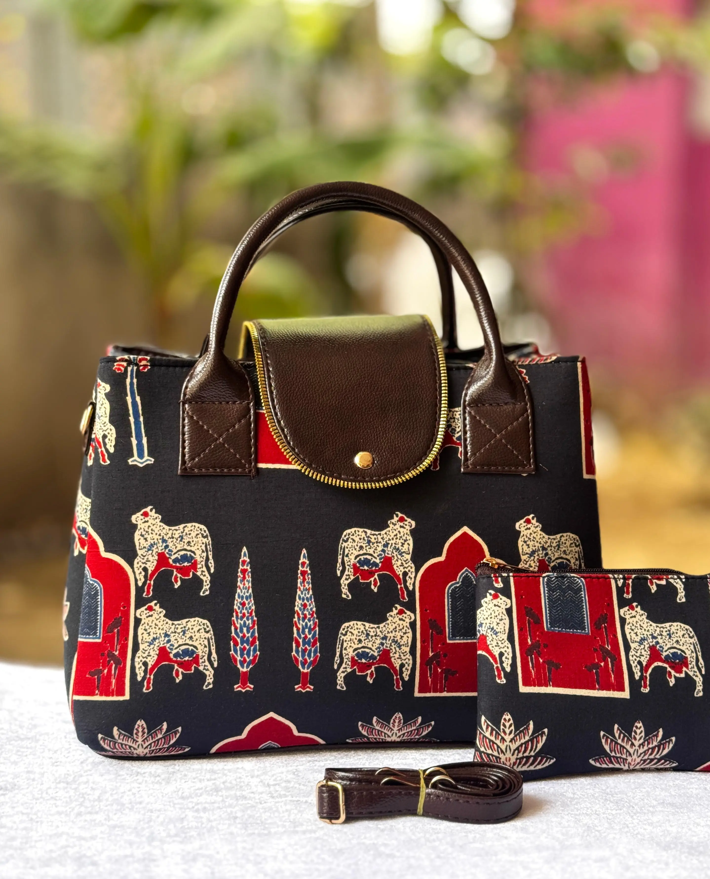 his Ladies Bag combines sophistication with functionality — spacious enough for your essentials, stylish enough to turn heads.This Ethnic Print Bag features vibrant, handcrafted designs inspired by India’s rich textile heritage. Whether paired with jeans or a kurti, it adds an authentic splash of color and story to your look.